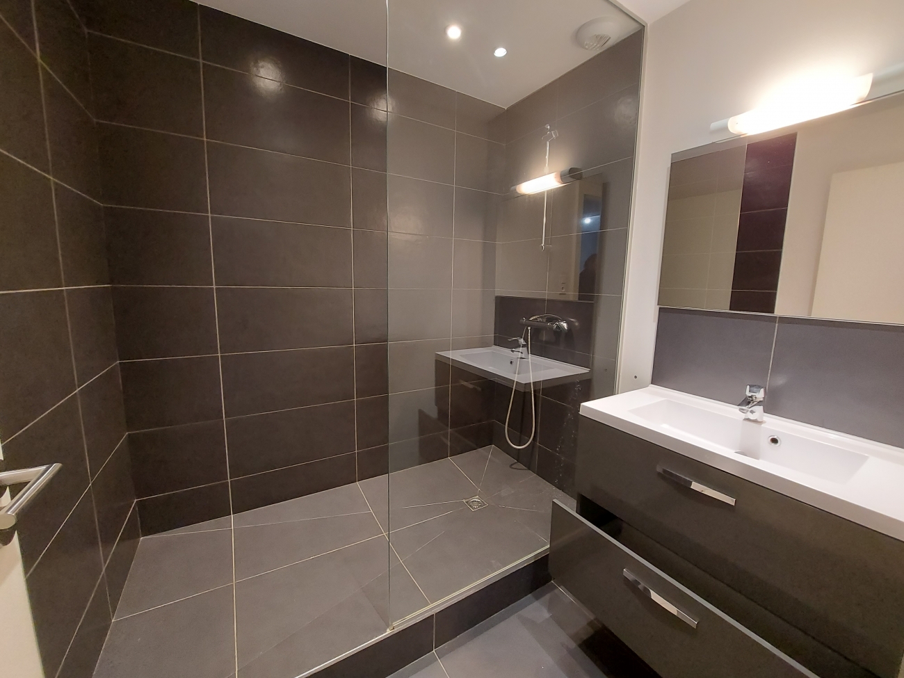 Il comprend une vaste entrée, une pièce de vie lumineuse de 29 m2 avec cuisine (équipée d'une plaque de cuisson vitrocéramique, un four, une hotte), une chambre de 13m2 et une salle d'eau.