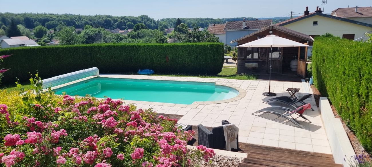 En annexes : Un garage, un jardin de 880 m² et son cabanon, une piscine creusée (8mx4m).