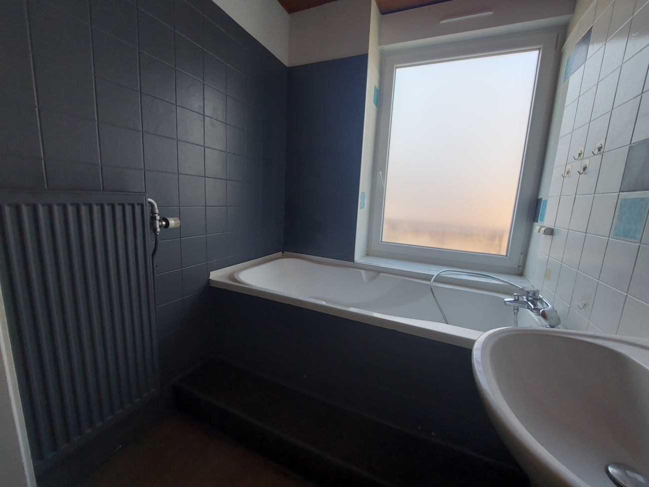 F4 en duplex, rue d'Alsace comprenant : une cuisine séparée à aménager, un séjour, une salle de bains, WC. A l'étage : deux chambres, un bureau.